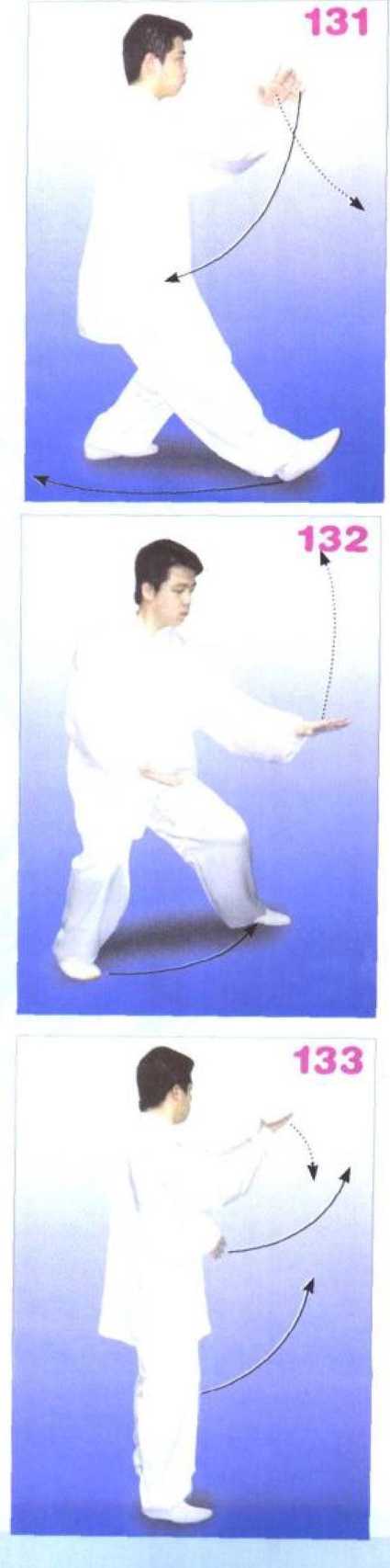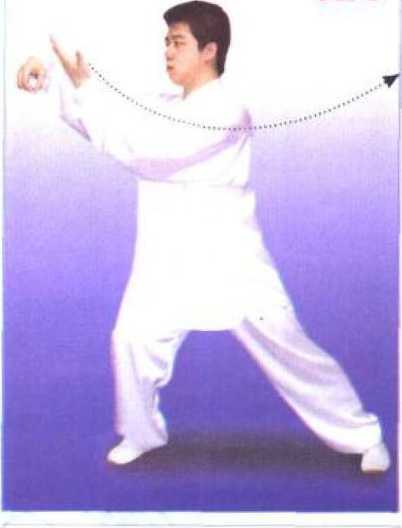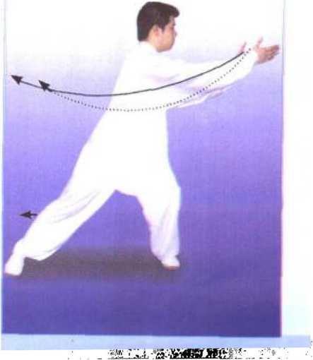 重心左移成左侧弓步;以下动 作左右对调后同本式(2)o (图 123)