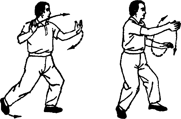 1 .当右掌前推时,腰左转约10°;当左掌前穿时, 腰右转约10。,胸亦相应左旋、右转,既符技击作用,身 形亦不显呆板。