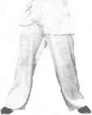 练习者开步站立,右手握刀置于体右侧,左掌置于体左侧,目视前方。(图 391)