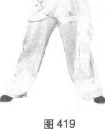 左掌向前推出,目视推掌方向。(图420、图421)
