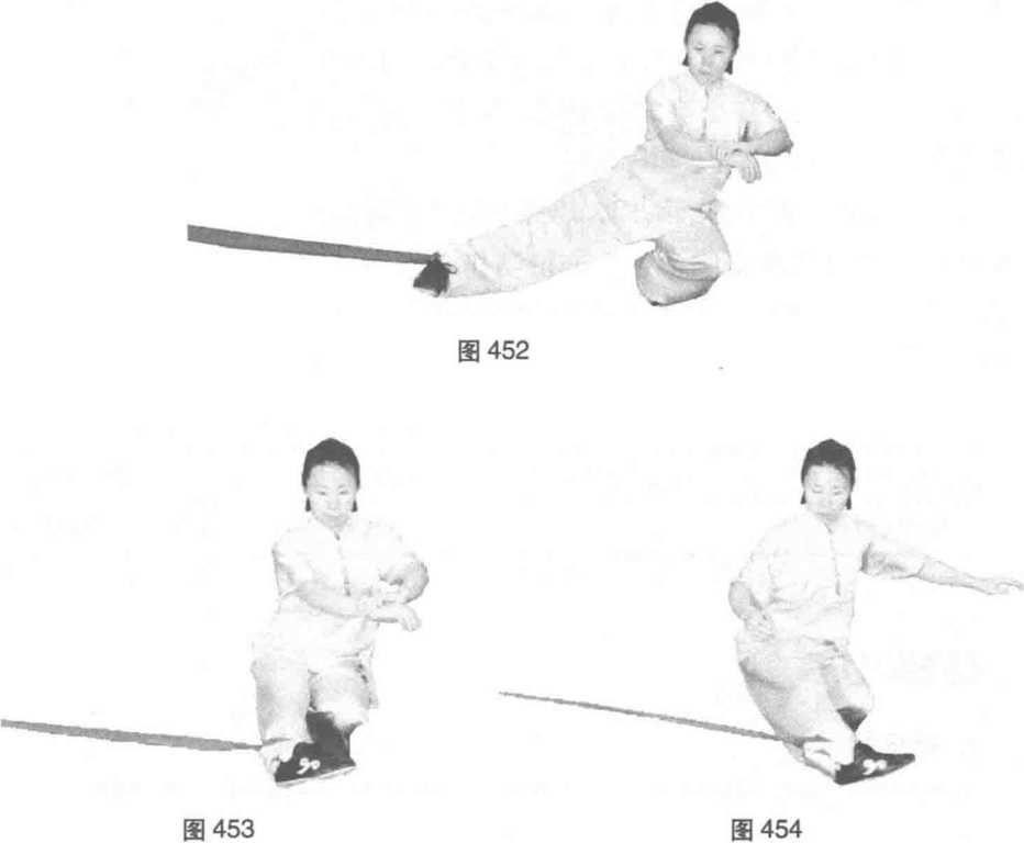 扫转腿贴地面扫转1周半或2周半。(图442 ~图448)