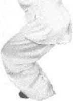 重心前移,两脚跟慢慢提起,踝关节、膝关节、髓关节、腰、胸随身体重心 上升前展后向前合抱,两臂下落后摆至体前,头后仰后前低头。(图672 ~图677)