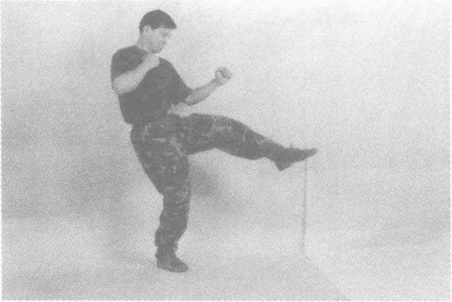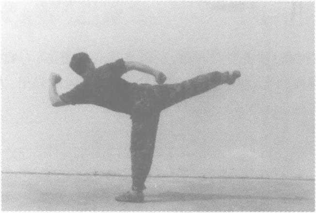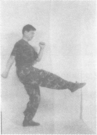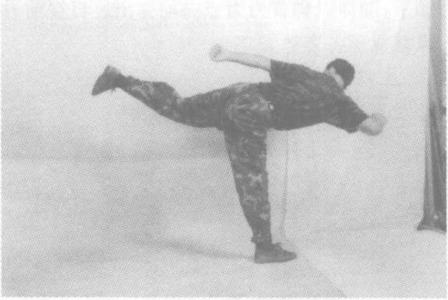 要点:攻击时,半身对敌,支撑腿的脚尖方向与蹬击方向相反。 用途:偷袭敌薄弱环节,常用于反败为胜的技法之中。