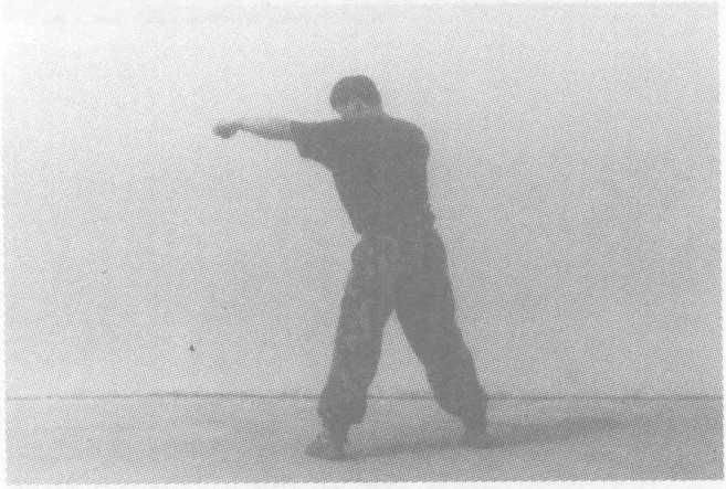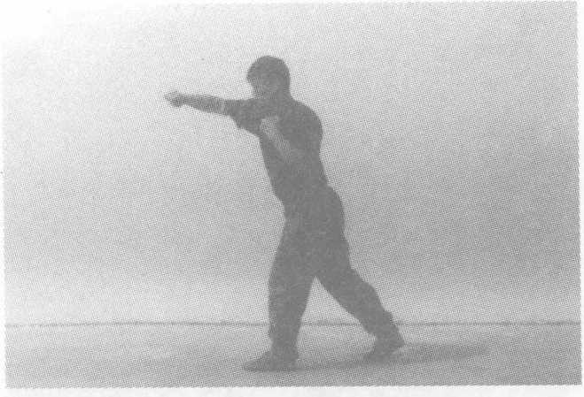 动作要领:右摆拳,接左直拳,接左侧踹,左脚落步,右直拳击 出,目视前方。要求:击打迅猛,重心稳。