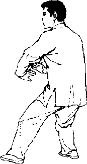 掌,沉劲按于腰上胸下。右足实,左 足虚r如图。