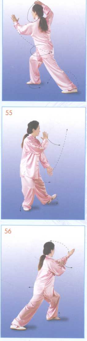 13 .扣脚转身 动作与本式5相 同,方向相反。(图55)