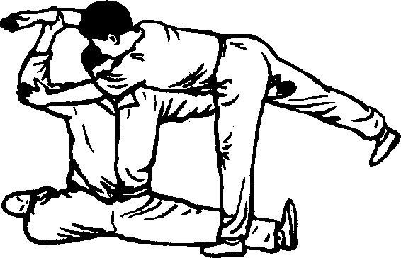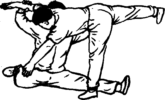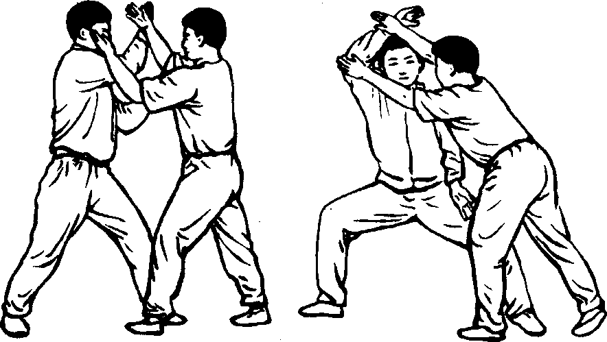 乙的捆劲突然放松前,要向前上顶甲一下,引出甲按劲 来,方可做跌岔。
