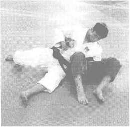 O靠近对方,身体与对方平行。环抱对方躯干向左翻滚。