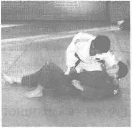 上四方固是在对方头前抱压对方身体的技术。两手抓腰带,两肘夹紧对方两 臂,把对方背固定垫上。