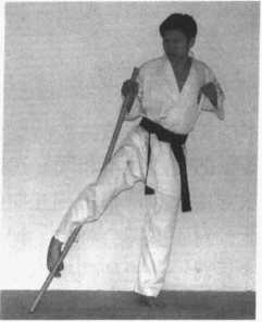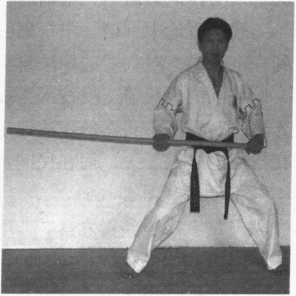 在浙江金华浦江县,有一种棍法,格挡防守时弓步成反向丁字步,以增加自 己侧面防守能力,化解对手横击棍的凶猛攻势,而且这种步型对防止对手用棍头 突然击打自己的脚尖也有作用。