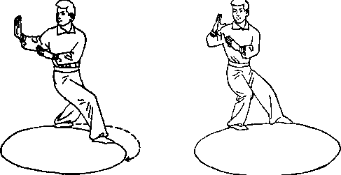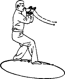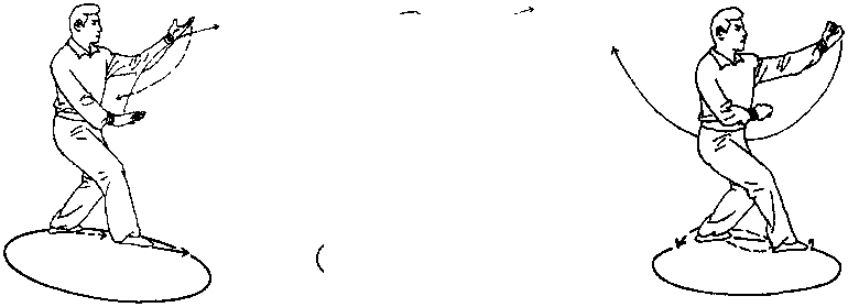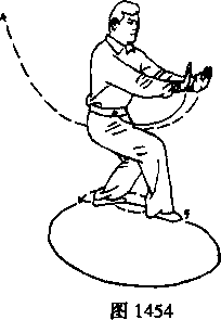 19 .乾坤旋转:上动不停。向右脚前扣上左步。以白虎坐地式,按地盘右转法,沿 圈不断向右走转(如图1466)。