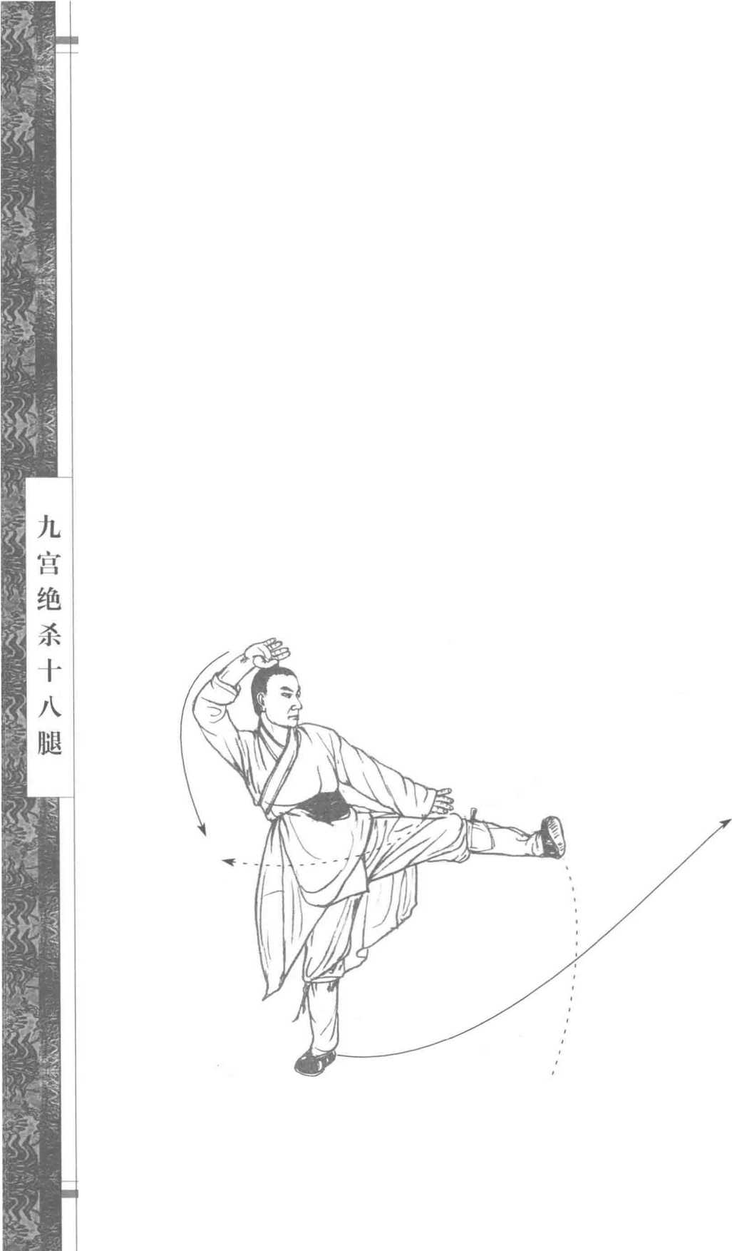 二十八、左侧踹架掌二十八、左侧踹架掌【要点】【要点】支撑腿微屈站立,侧踹时上身稍 向右倾斜,侧踹力达脚跟。支撑腿微屈站立,侧踹时上身稍 向右倾斜,侧踹力达脚跟。图 4一42图 4一42kk|九宫绝杀十八腿经典珍藏版