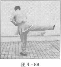 ④左腿目前经左向后拨绕,使鞭自腿前向左后平扫(图4- 88)。