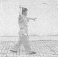 ①横上右步,鞭自左上经体前绕至上方(图4-85)。