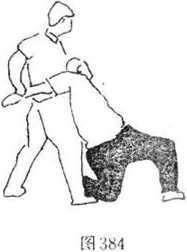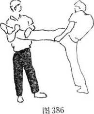 5 在搏击过程中乙提起左腿弹踢甲肋部(图385)。