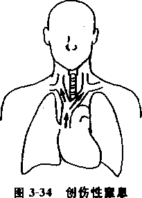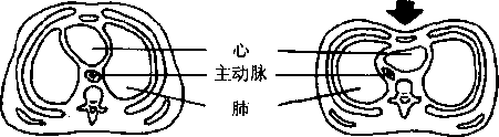 由于胸骨体和与之相连的肋软骨在解剖上的这些特点使胸前区的结构具有一定的弹性甚至在外力作用下内陷5而不发生骨折当胸骨骨折、肋软骨骨折时其内陷幅度就会更大。一个骤然巨大的暴力造成的胸前区内陷会将位于其后方的心脏逼迫在脊柱胸段之前引发心和心底部大血管的挤压伤(图3-31)。