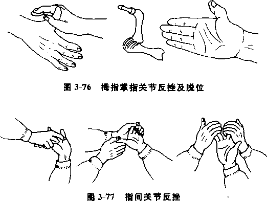 抓住敌之拇指使其过伸可致拇指掌指关节脱位(图3-76)。