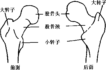 股骨上端有朝向内上方呈半球状的股骨头股骨头向外下缩细为股骨颈颈根部向外上突出的粗糙隆起称大转子向后内突出的隆起称小转子。大、小转子及其之间的区域统称为股骨转子部(图3-84)