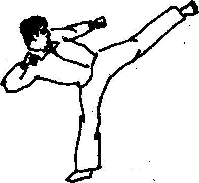 动作说明右脚蹬地向左侧方垫步跳起右脚在左脚内侧落地略右侧转体左腿提膝展鼓左脚向左侧上方猛力踹出与胸部同高力达脚底外侧左臂随踹出之腿经腹前向