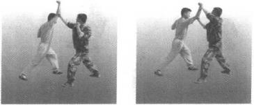 动作要领上步快右手托肘时机准确。左手推敌手腕时爆发力要强。