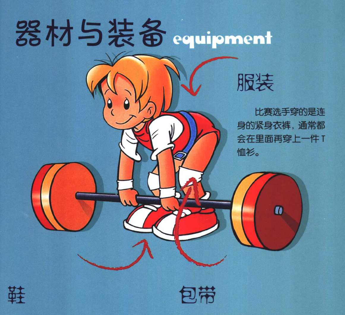 杠铃杠铃四头肌四头肌规则规则用来支撑腹部和后背 度不能超过120亳米。用来支撑腹部和后背 度不能超过120亳米。一根金属棒,两端是外面包着橡胶 的金属圆盘。圆盘的重量以颜色来标 识:红色的表示25公斤、蓝色的表示20 公斤、黄色的表示15公斤、绿色的表示 10公斤、白色镀铭的表示5公斤、黑色 镀铭的表示2.5公斤、自然色镀铭的表 示0.5公斤和0.25公斤。一根金属棒,两端是外面包着橡胶 的金属圆盘。圆盘的重量以颜色来标 识:红色的表示25公斤、蓝色的表示20 公斤、黄色的表示15公斤、绿色的表示 10公斤、白色镀铭的表示5公斤、黑色 镀铭的表示2.5公斤、自然色镀铭的表 示0.5公斤和0.25公斤。术语提示术语提示大小腿之间的关节大小腿之间的关节连身的短裤和无袖背心连身的短裤和无袖背心大腿前面的肌肉大腿前面的肌肉举起举起设定的条例设定的条例在举重比赛中,有5名评判委员在举重比赛中,有5名评判委员