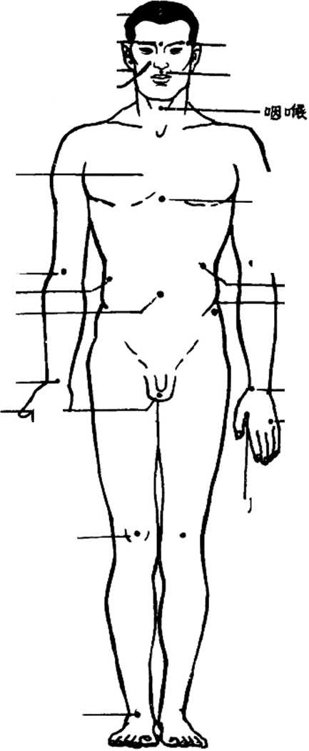 胸部胸部腰胜腰胜JJ指关节指关节虎口麻虎口麻脏关节脏关节,图一),图一)跺关节跺关节11肘关节 软肋- 腹就肘关节 软肋- 腹就太阳穴-人中太阳穴-人中腕关节裆部腕关节裆部头部?印皖一耳后一限睡头部?印皖一耳后一限睡?T—时部麻—?T—时部麻—脱都前一手IT麻脱都前一手IT麻指关节