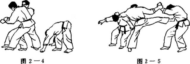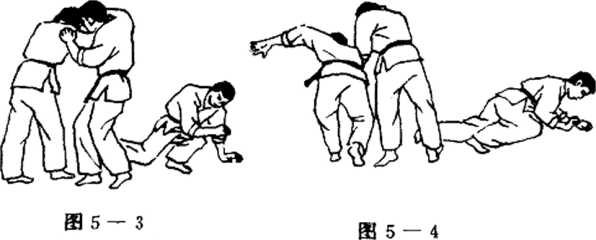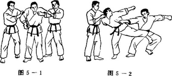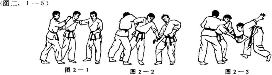⑤右肘用力向对手下额撞击。将其打倒在地。(图1 — 5 )