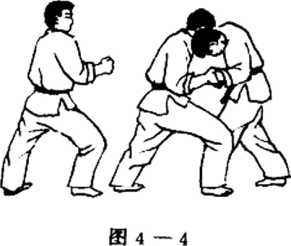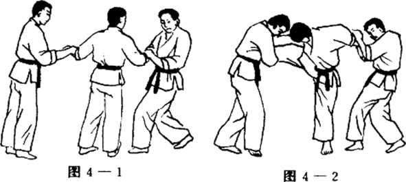 ④我右手扭,拉他右手,左手下压其关节部位,同时左腿前移。(图五、1 一4)