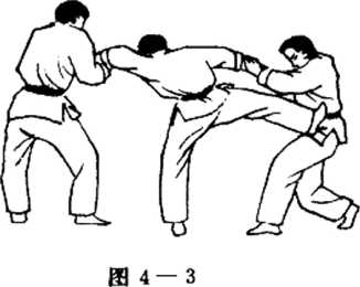 ③右脚突然回收,并向右方对手胸腹部踹击。