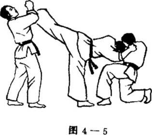 ④我左脚用力向体后对手档部踢击。