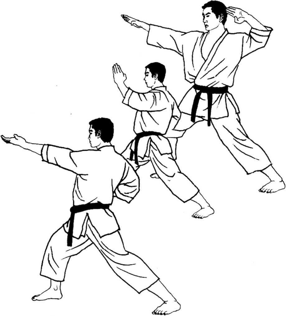 手刀打法的五方向 图(12— 2) (一)自右上方到左斜下方 :一)自左上方到右斜下方 (三)自右到左一字形 (四)自左到右一字形 (五)自顶上垂直向下