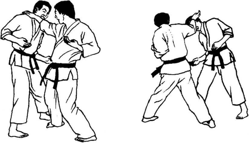 手刀分为两种,使用第五指掌骨时称为顺法,使用第二指关节部位称为逆法,(图12 1)