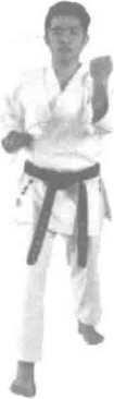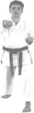 图182前屈立左脚上 前一步左手上 段格挡图182前屈立左脚上 前一步左手上 段格挡图183左脚收回成外八 字立双拳置于腹 前图183左脚收回成外八 字立双拳置于腹 前