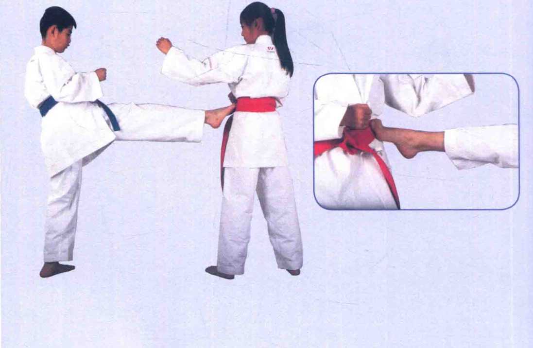 足技任何足技的运用仅限于中、上段得分部位(对耻骨以上的有效踢击也是被允许的)。