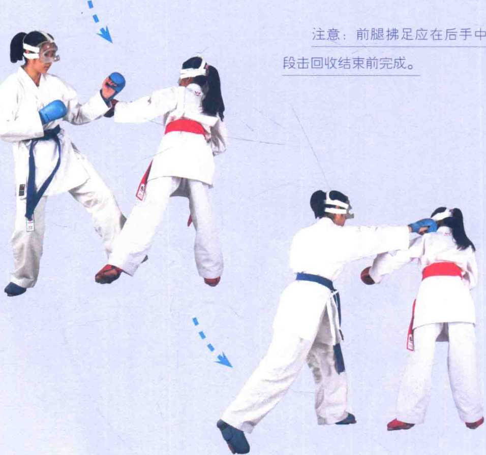 左脚拂足+右拳上段击技术要领在后手中段击重心回收的同时得到近距离的机会前腿用拂足技术将对手重心破坏同时进行上段击打。5 (闭式)右腿中段击+(后手)高速上段双连击技术要领后腿横踢对方内落地同时进行高速双连击追击要求双连击要控制住重心拳的击打要求清晰有效地在同一落点判断对方的距离做合适的闪位。6 (闭式)右后手中段击+(前手)高速上段双连击技术要短后手中段击回收同时进行高速上段双连击双连击要求控制住重心拳的击打要求清晰有效地在同一落点判断对方的距离做合适的闪位。