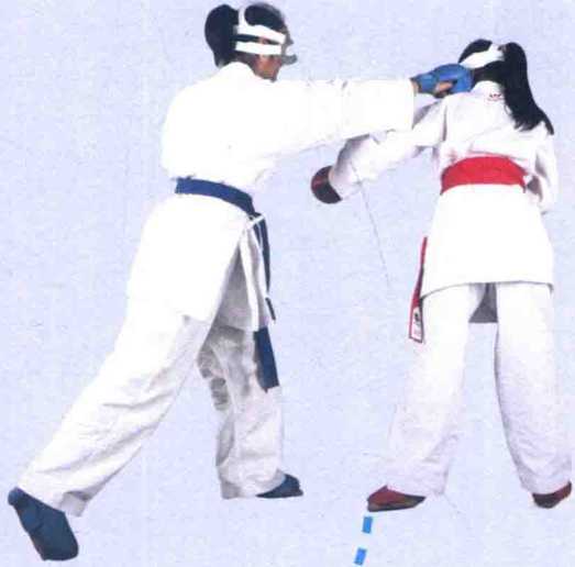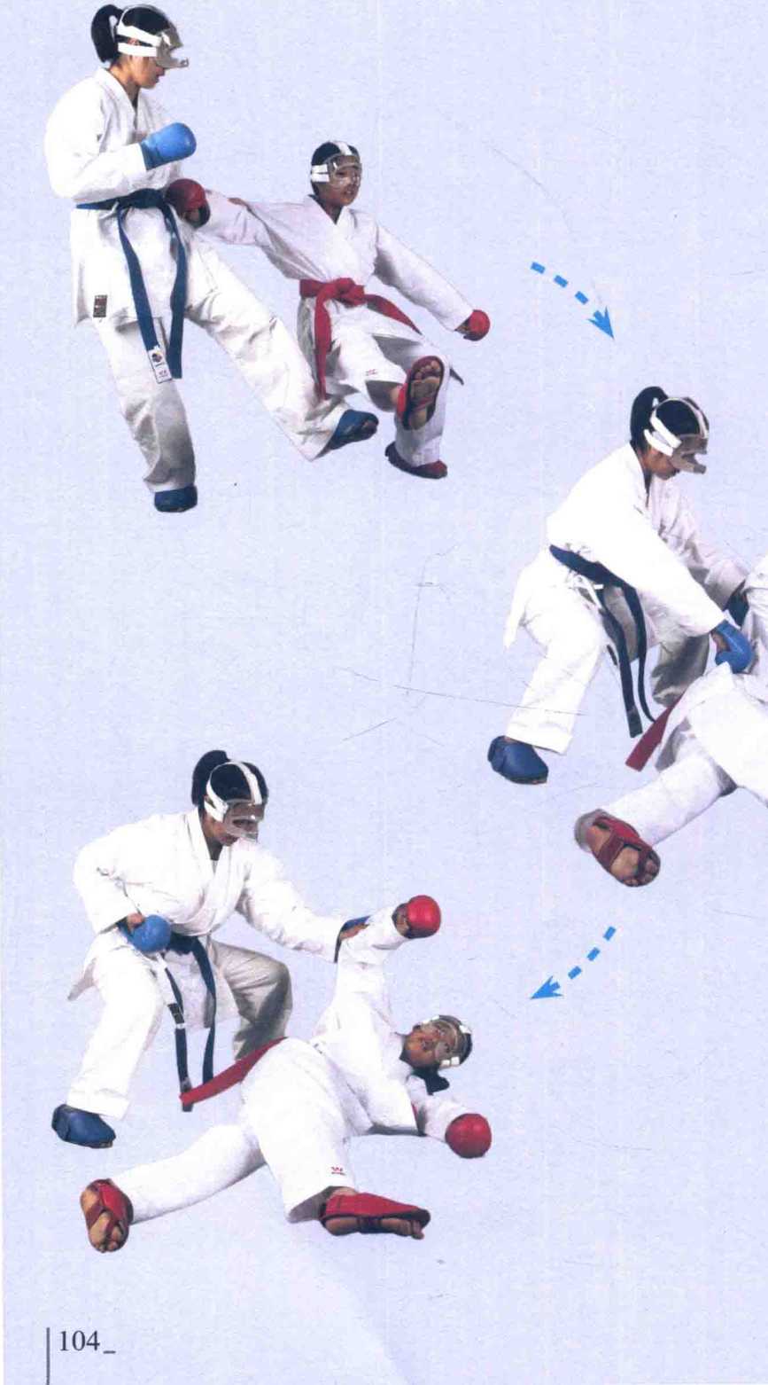 技术要领利用后手中段击(对方在躲防时)迅速贴靠左手抓住对手肩部道服的同时前脚拂足勾扫对方支撑腿使其失去重心后倒地迅速四股立出拳击打倒地对手的有效部位。两61五基础教程