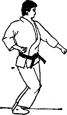 ② 冲拳时后腿笔直伸开,蹬住地面,利用其反作用力增 加冲拳威力。