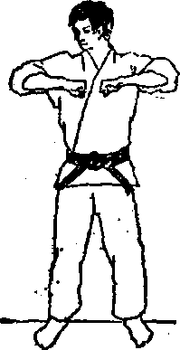① 预备式:两拳收于胸前,脸向右转,直视目标(图 152)0