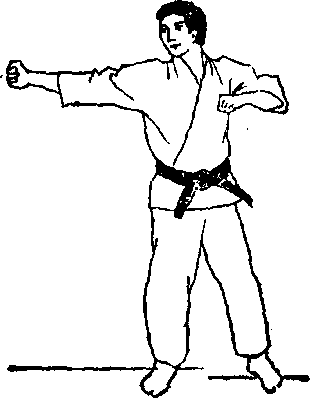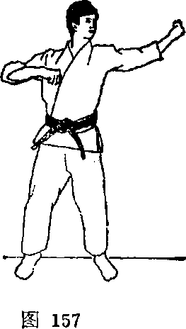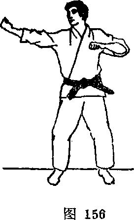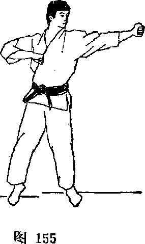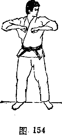 ⑦ 立即收回右拳,脸向左转(见图154)O