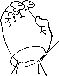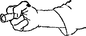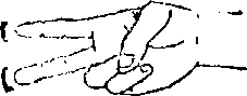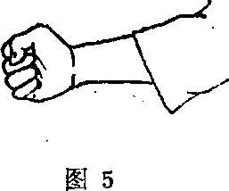 (5) 大拇指压放在食指和中指的第二指节上,用大拇 指和小指束紧中间的手指(图5)。
