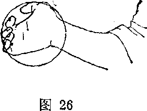 以上是拳的正确握法。初学者总爱给大拇指使劲,这样 往往破坏了拳的整体平衡性,因此要求小指应与大拇指同时 握紧。
