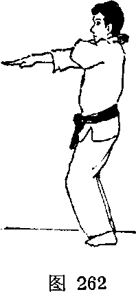 ③ 腰向正面不变,右脚前跨半步(图260)。