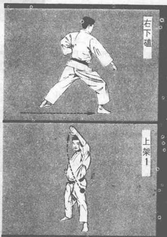 右弓步,右拳由下向上架,?以