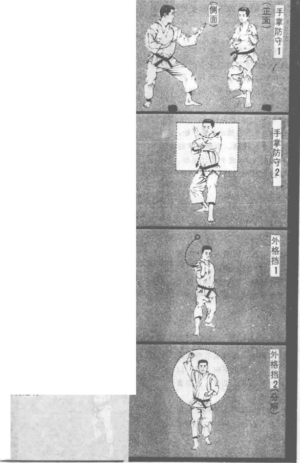 向上防守和向下防守,包括用手掌、拳和小臂防守,此外还有双手防守