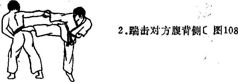 3 ,右脚以脚掌踹击对方下颌部 位[图109 X