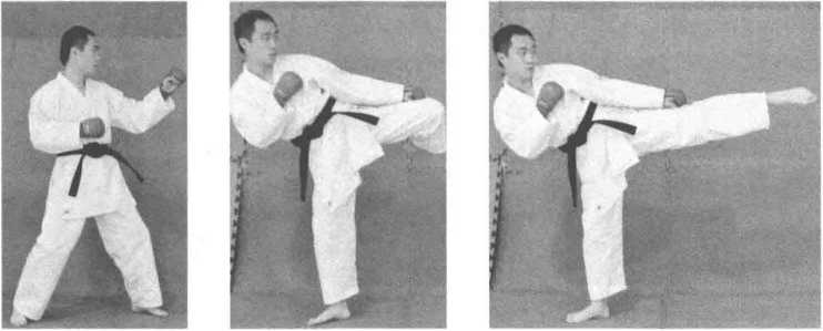 【要点)直线提膝,支撑脚转动,大腿带动小腿,鞭打发力,须力达脚背外侧。