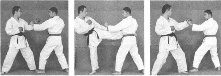 2 .前横踢进攻对手腹部。(图3-7-19)