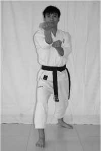 1 .The movement of feet: forward stride your right foot and in the basic posture