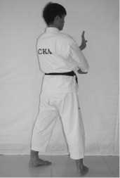 3 .手部动作:左低位格 挡,右拳置于腋下