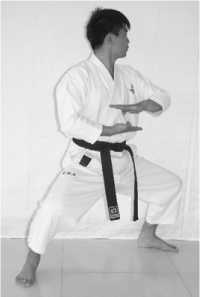 3 .The movement of hands: fists downward, make a low block, body move to the 45° left front, eyes down